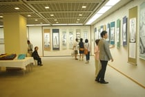 墨絵・書道・絵手紙クラブ、ペーパーフラワー・手作りクラブ・小物クラブ、生け花・フラワーアレンジメントクラブを中心に、毎週月・火・金・土曜日のクラブ活動時間にコツコツと丹精こめて作り上げた作品が壁一面に飾られ、なかなかの迫力でした。