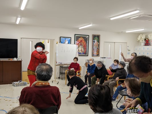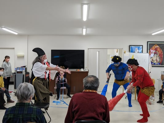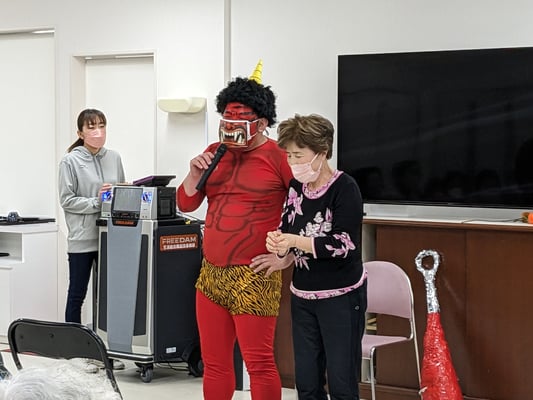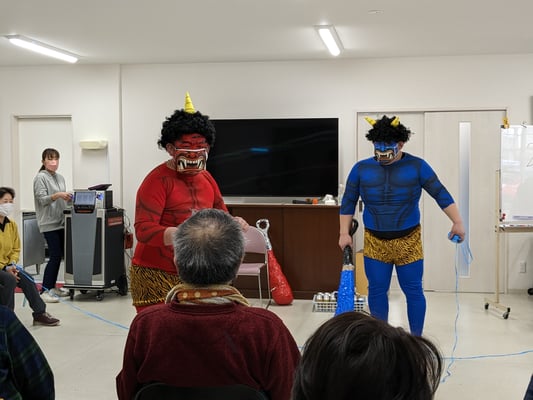 あんしんにも鬼が現れ、何故かあんしんに居た陰陽師様とみんなで豆まきをし、鬼退治をしました!